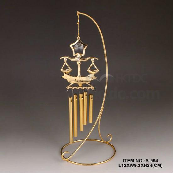 24K Gold Plated Metal Libra Zodiac Windchime with Swarovski Crystal