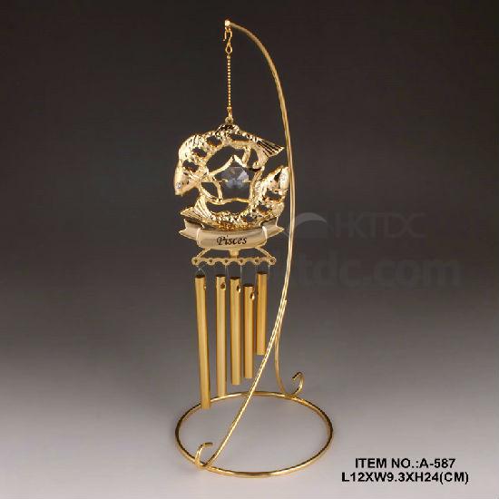 24K Gold Plated Metal Pisces Zodiac Windchime with Swarovski Crystal