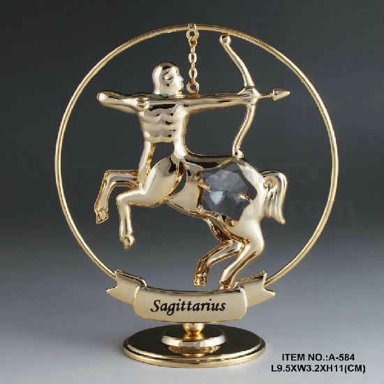 24K Gold Plated Metal Sagittarius Zodiac Ring Stand with Swarovski Crystal