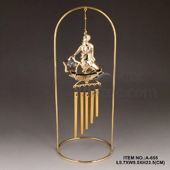 24K Gold Plated Metal Virgo Zodiac Windchime with Swarovski Crystal