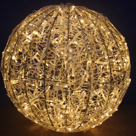 1. 24V 3D ball diam.60cm, 364 LEDs warm white with 14% flash warm white, aluminum frame in gold