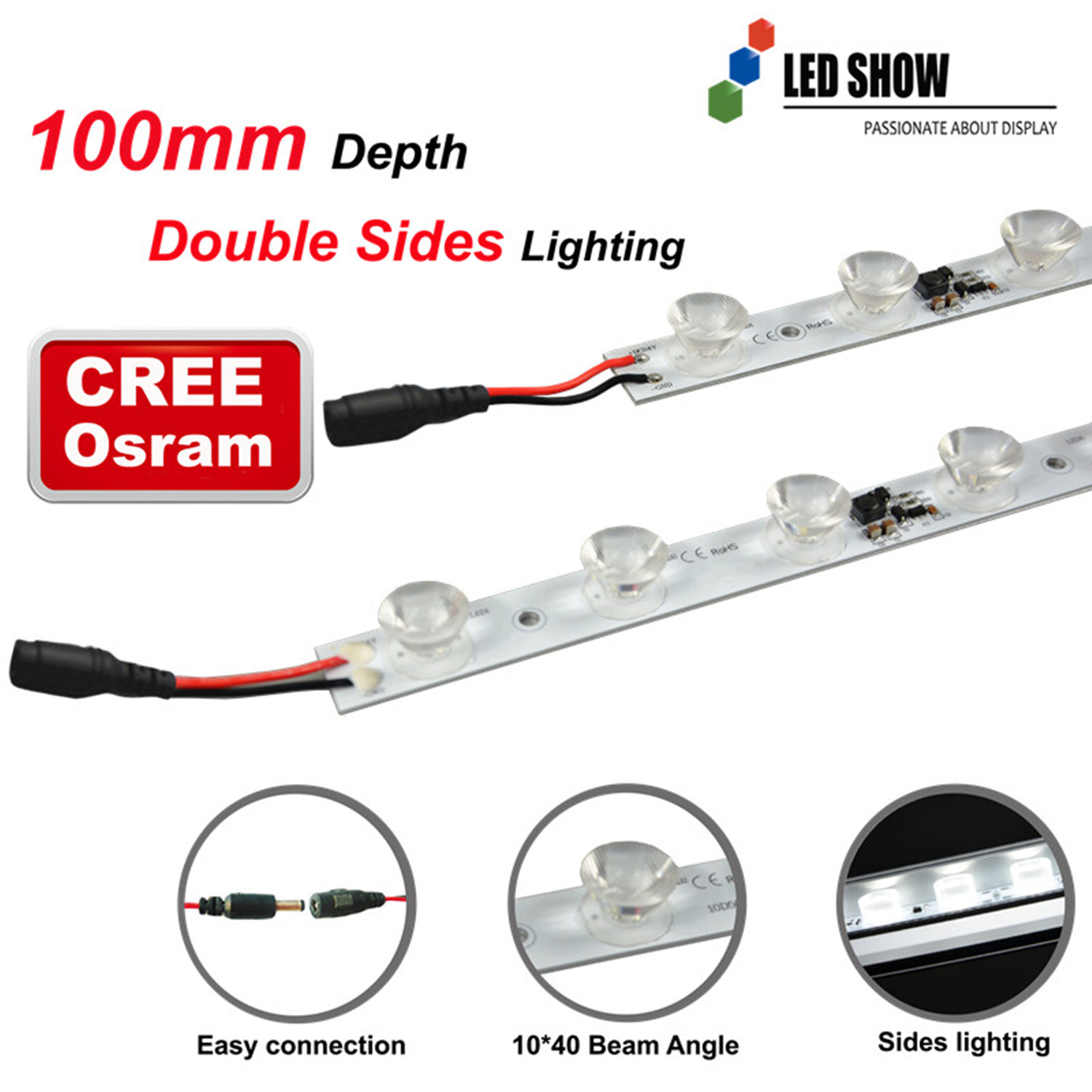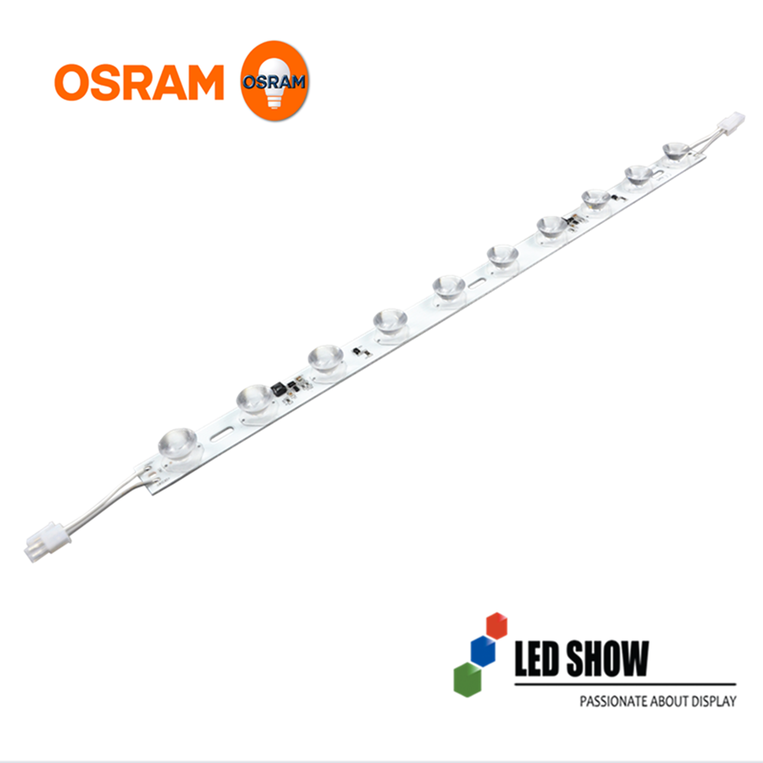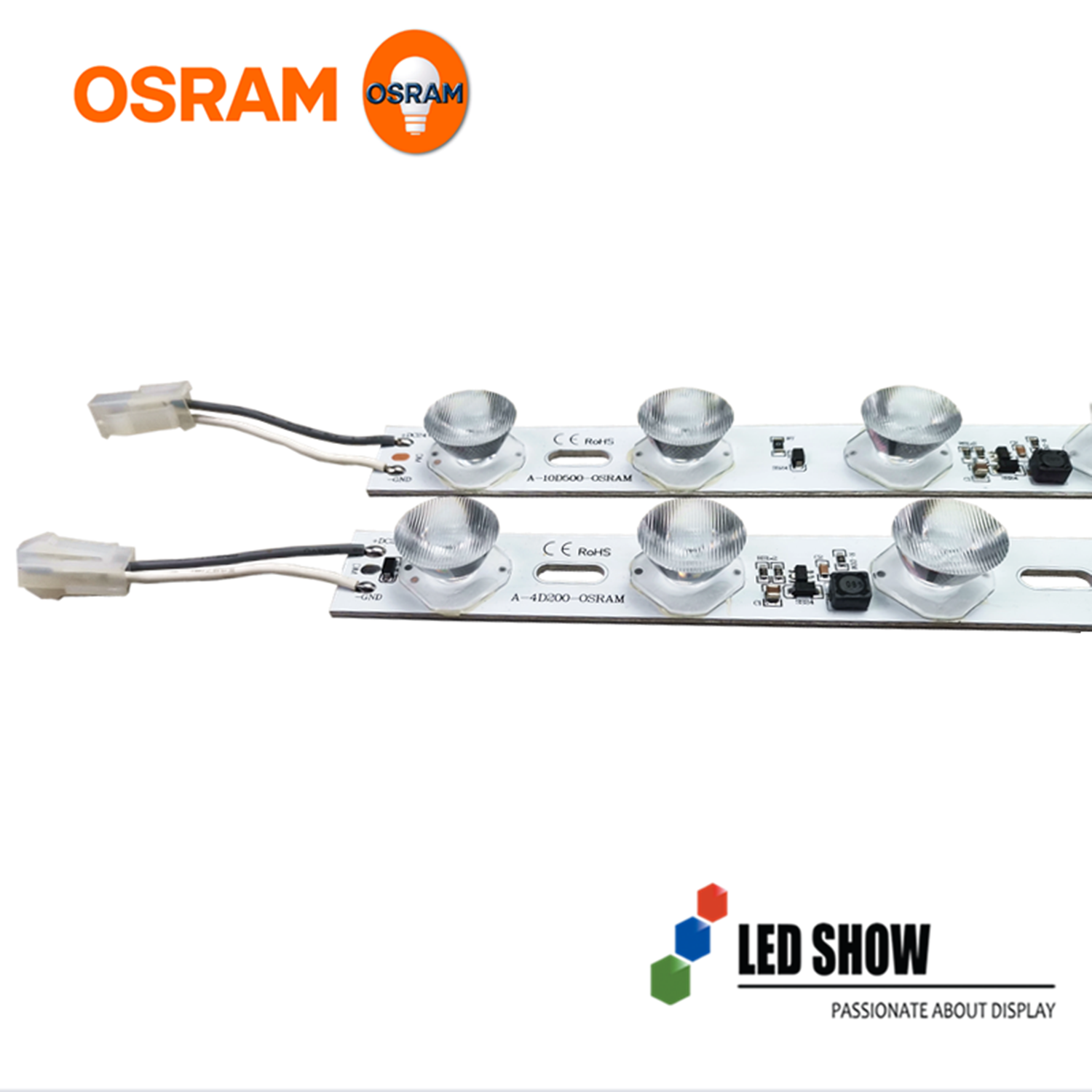 OSRAM LED strips are an economical solution for illuminating light boxes with a minimum thickness of 100 mm on both sides. These high-power LED strips are extremely bright and easy to install and are safe to use with a DC24V input voltage. OSRAM LED strips require aluminum profiles for better heat dissipation.