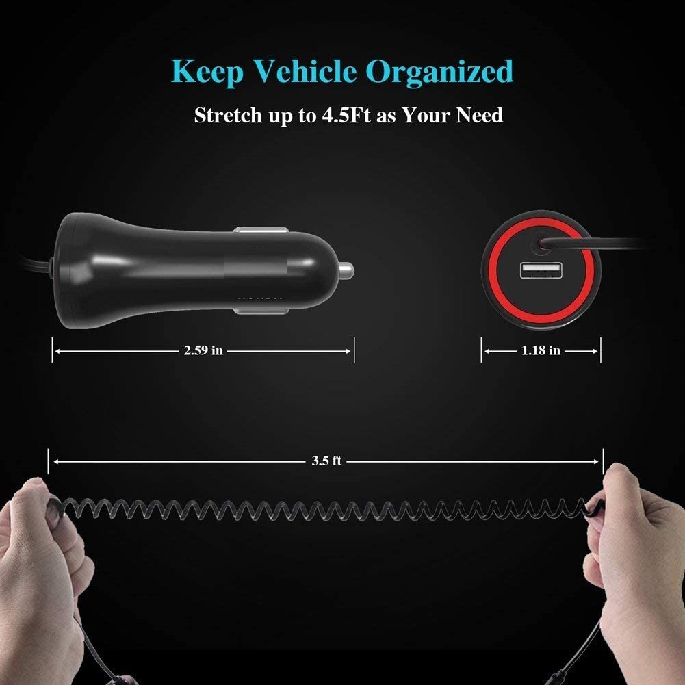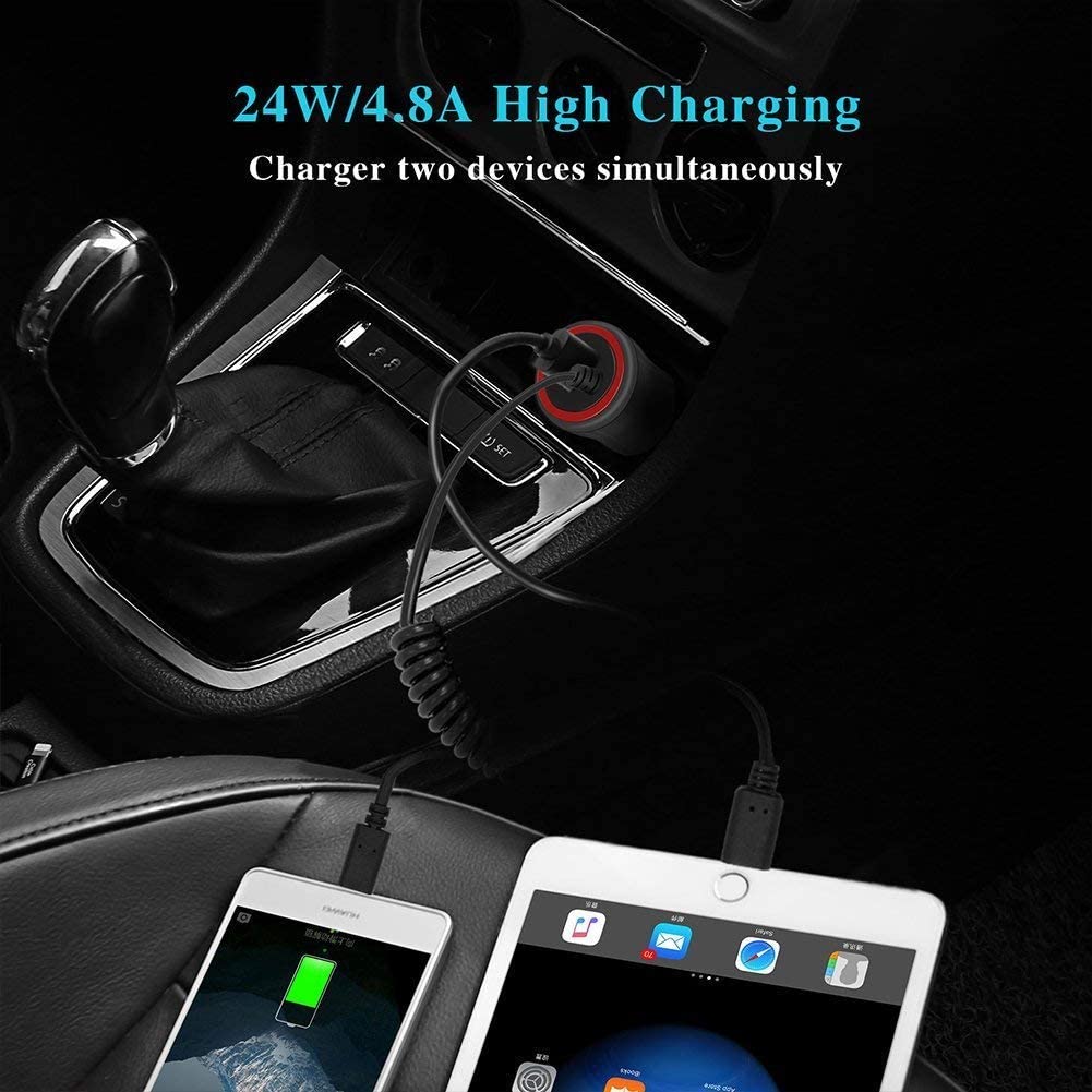 3) 24W/4.8A High Power Supply - Provide the fastest possible charge up to 4.8 amps or 2.4 amps per port to charges 2 compatible devices simultaneously on road.