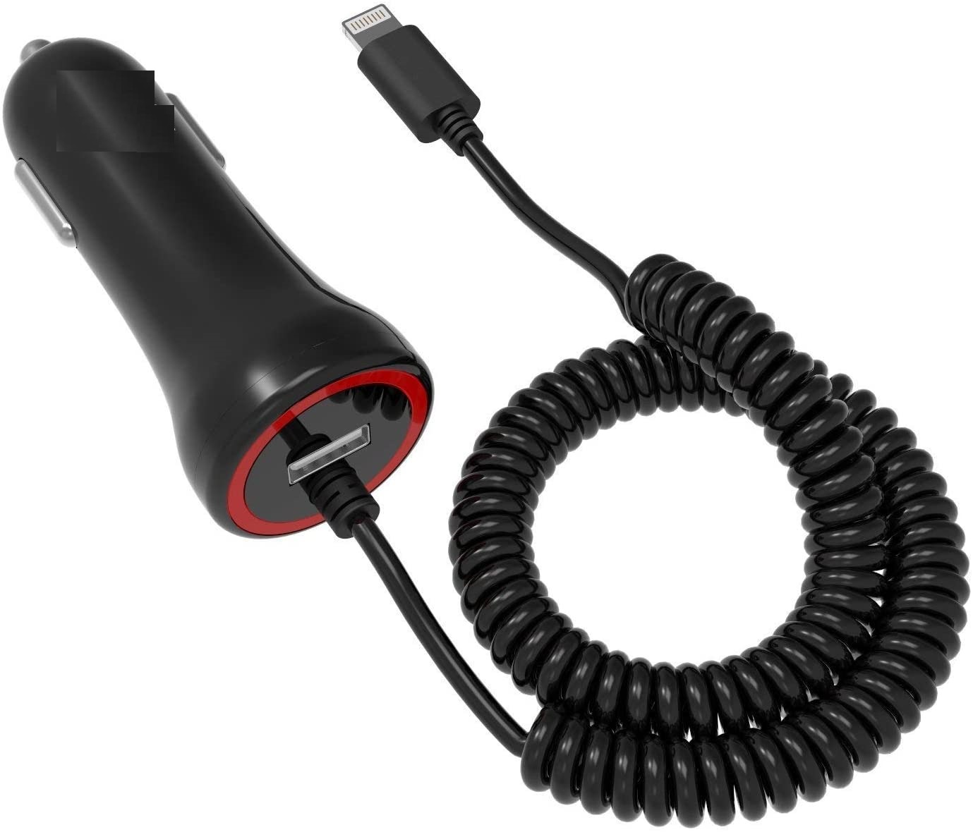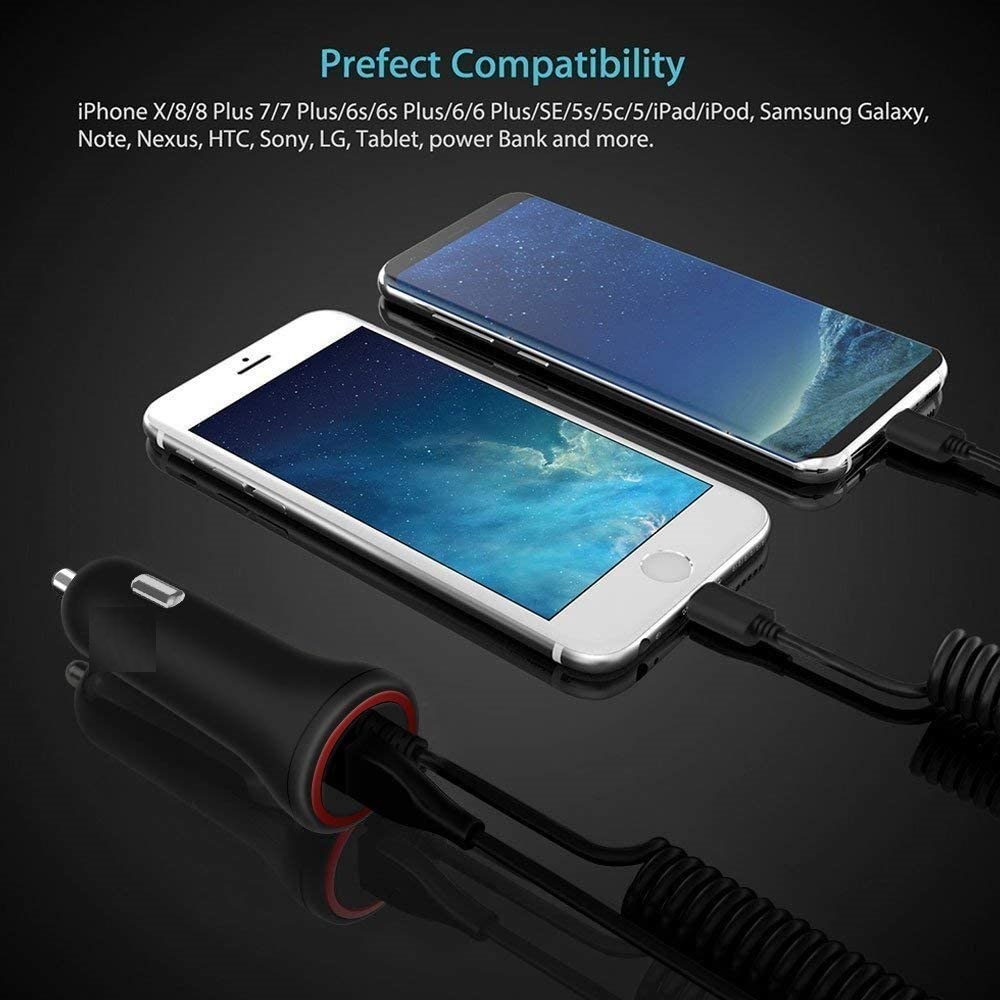 1) Built-in Flexible Cable - The coiled cable keeps the vehicle organized without a cord hanging, charging your iPhone 6S/6 Plus, iPhone 6/6S, iPhone 5S/5, iPhone SE, iPhone 5c, iPad Air, iPad etc.