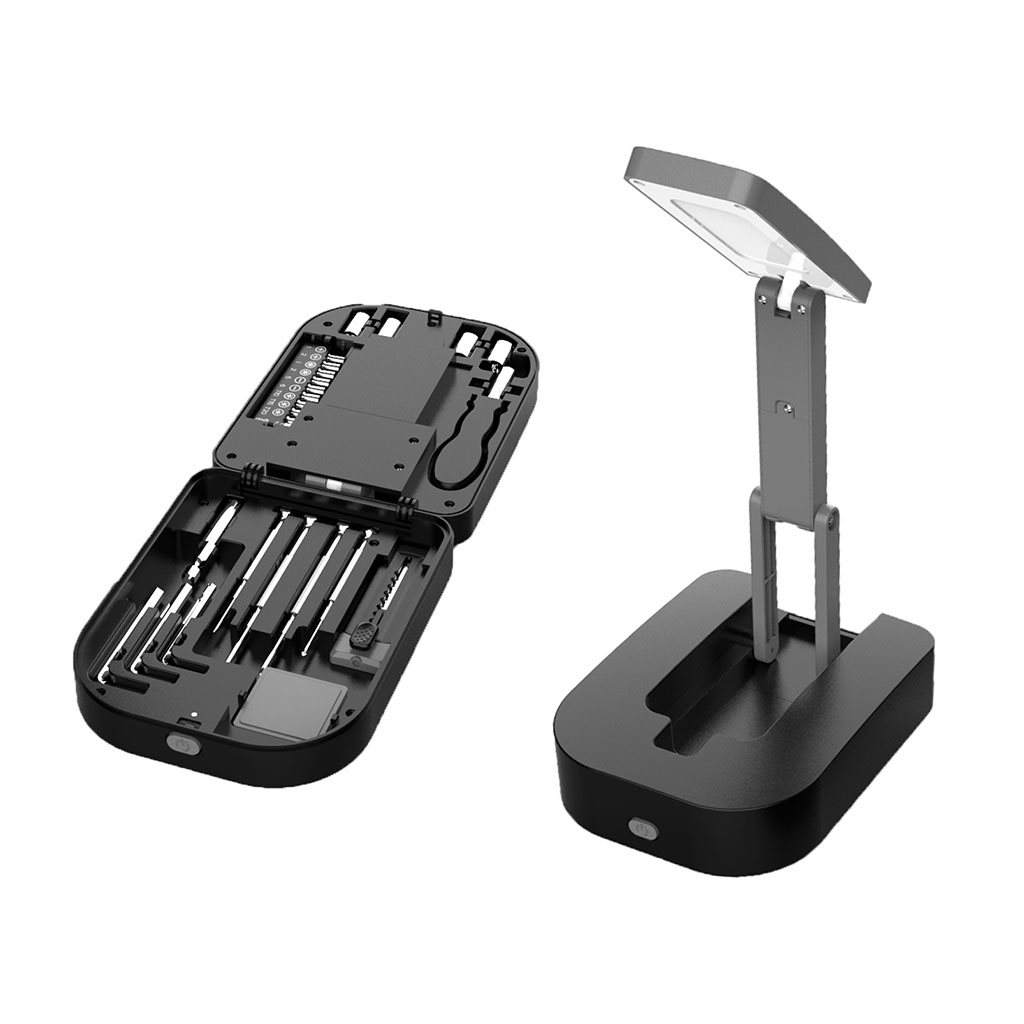 25-Pieces Multi-functional Tool Set with Folding LED Lights includes the following features :