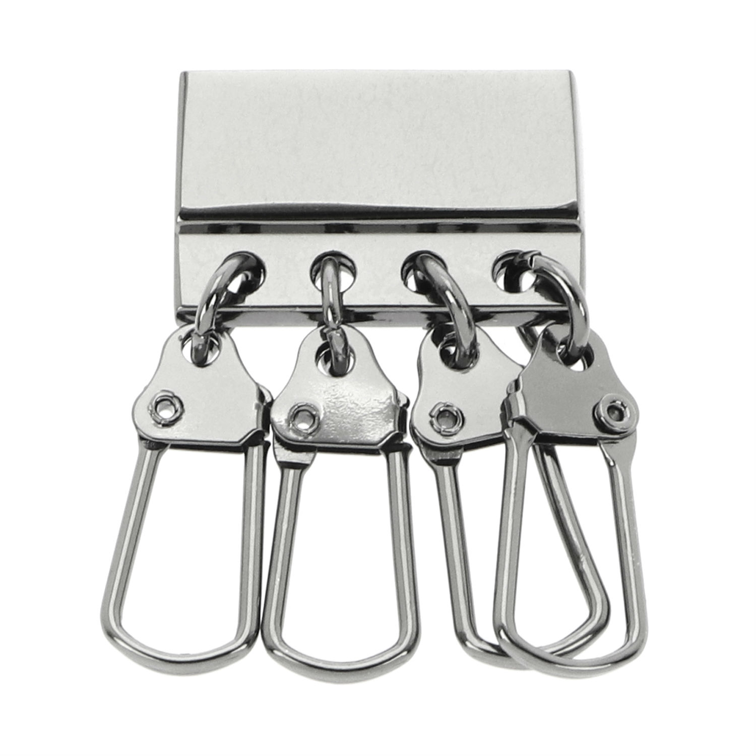Bring your new key holder designs to life with this key holder clip. Rendered in zinc-alloy, this key holder clip boasts a sheeny and polished look. It is also designed to hold four keys, so your customers can keep all their apartment keys and office keys in it. Attach this classic and user-friendly key holder clip to your key holder to complete your product.