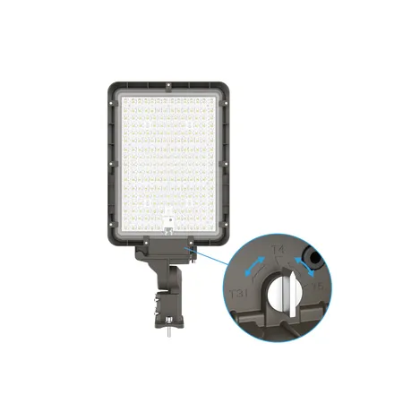 The 27-IN-1 Parking Lot Light feature 3 Wattages Switchable, 3 CCT Tunable, Dusk to dawn photocell, Timed dimming, delivering top of the line efficiency and versatility that results in a truly optimized approach to each application. Heavy duty Die-Cast Aluminum housing with advanced thermal transmission ensures the best performance of heat dissipation.The LED Parking Lot Light ideal for commercial and residential applications. Widely used in pathway, walkway, driveway, road, street, yard, farmyard, park, garden, playground, school, parking lot or other outdoor area.