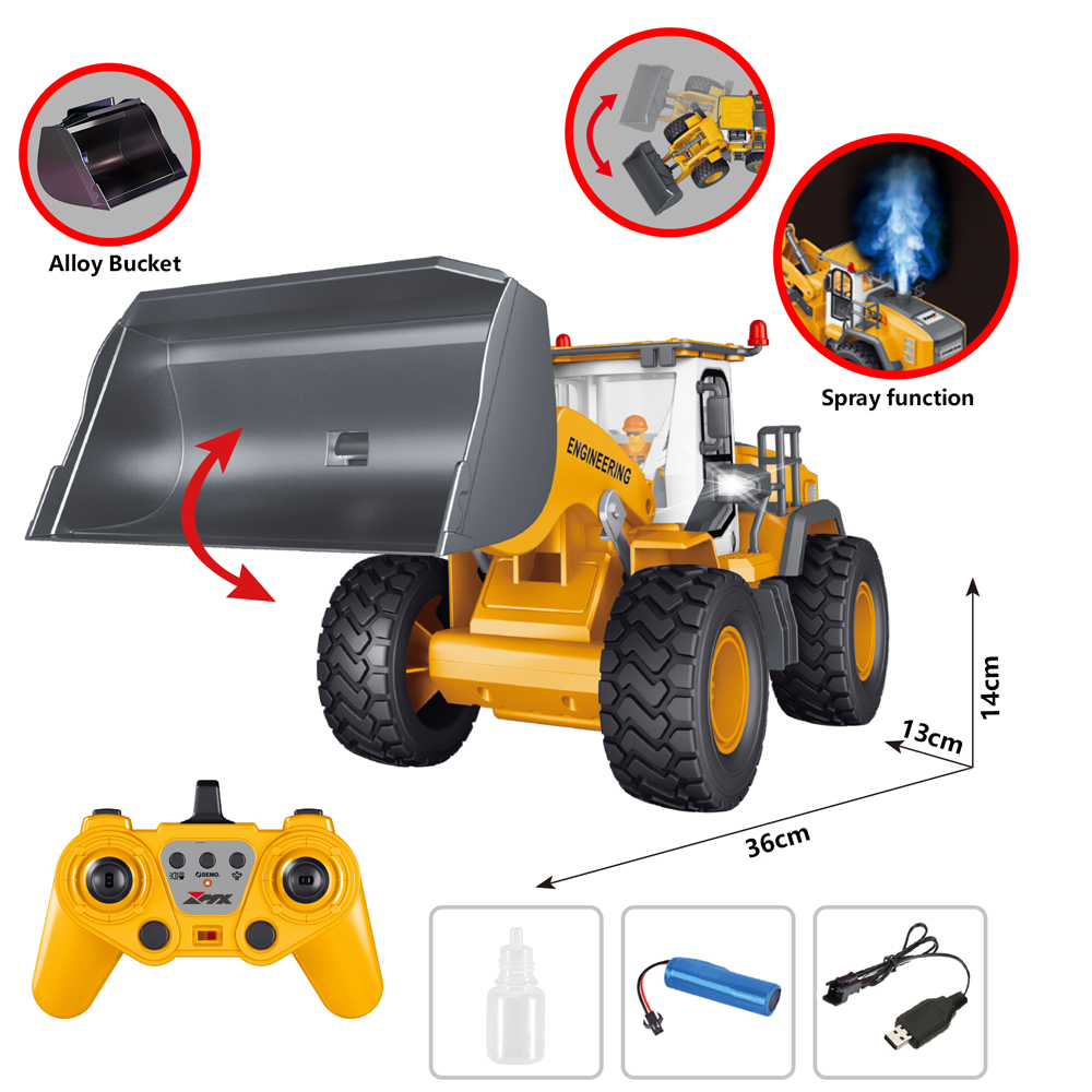 | Function | Forward/backward/left right turn/bucket up/bucket down/light on/light off/spray |