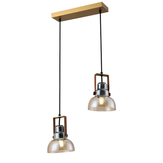 2Lt Pendant Lamp, Material:Metal+Glass, Bulb:2x E27 Max.40W, Product Size:L380×W142×H1500mm, Shade size:Ø142×130mm ,Colour:Black + smoke glass , or Gold + Black metal parts / Cognac glass , or Black + Clear glass, Packing:white box+colour label
