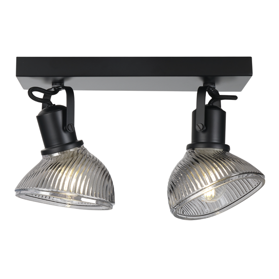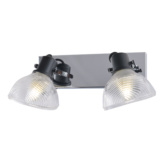 2Lt Spot Light Bar,Material:Metal+Glass , Bulb:2x E27 Max.40W,Product Size:L330×W150×H170mm,Shade size:128×123×85mm,Colour:Black + smoke glass ,or Gold + Black metal parts / Cognac glass, or Chrome + Black metal parts / Clear glass, Packing:white box+colour label