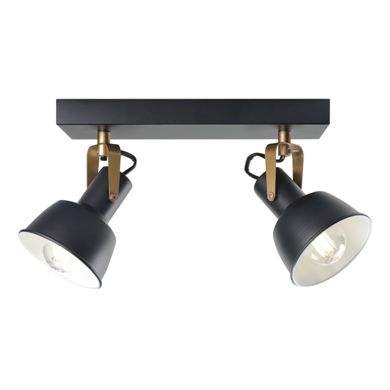 2Lt Spot Light Bar, Material:Metal, Bulb:2x E14 Max.40W, Product Size:L260*W90*H140mm, Colour:matt black+sandy gold , Packing:white box+colour label