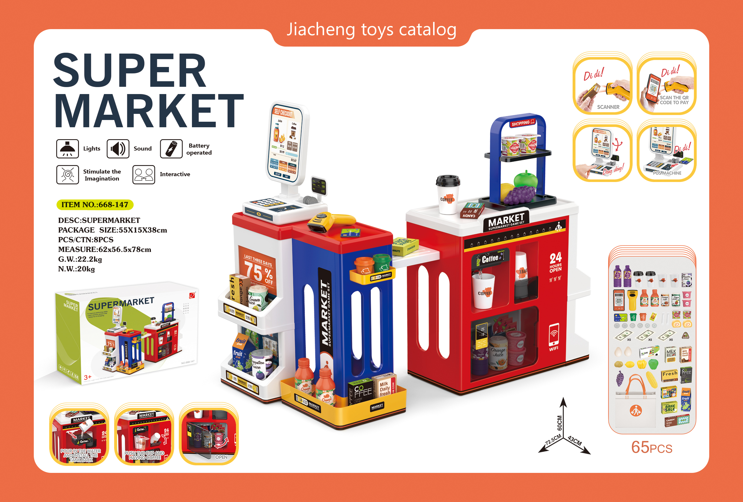 The supermarket playset with light&sound, can scanning simulation, simulated refrigerator,cas register, coffee machine, with post machine, help children develop hand-eye coordination, teamwork, creativity, and imagination