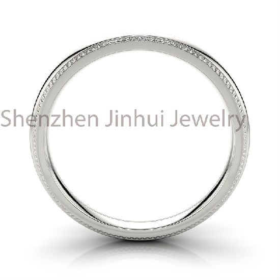 This 18k white gold women's classic milgrain wedding band. Comfort fit.