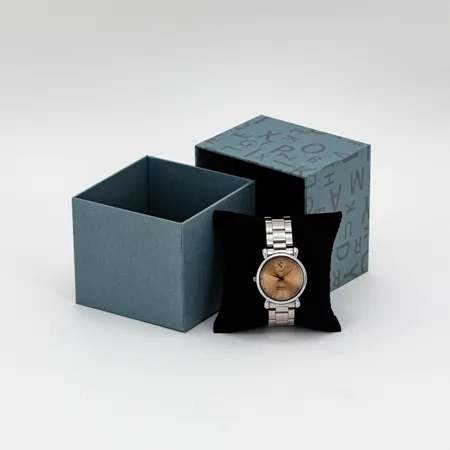 Outside : cardboard wrapped by black paper , with patterns all over the box