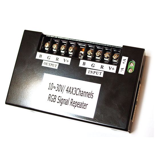 Presented to you is am RGB signal repeater with a 3-channel design. The meticulous construction allows outstanding performance. This 3-channel signal repeater is an ideal choice for party and commercial use.