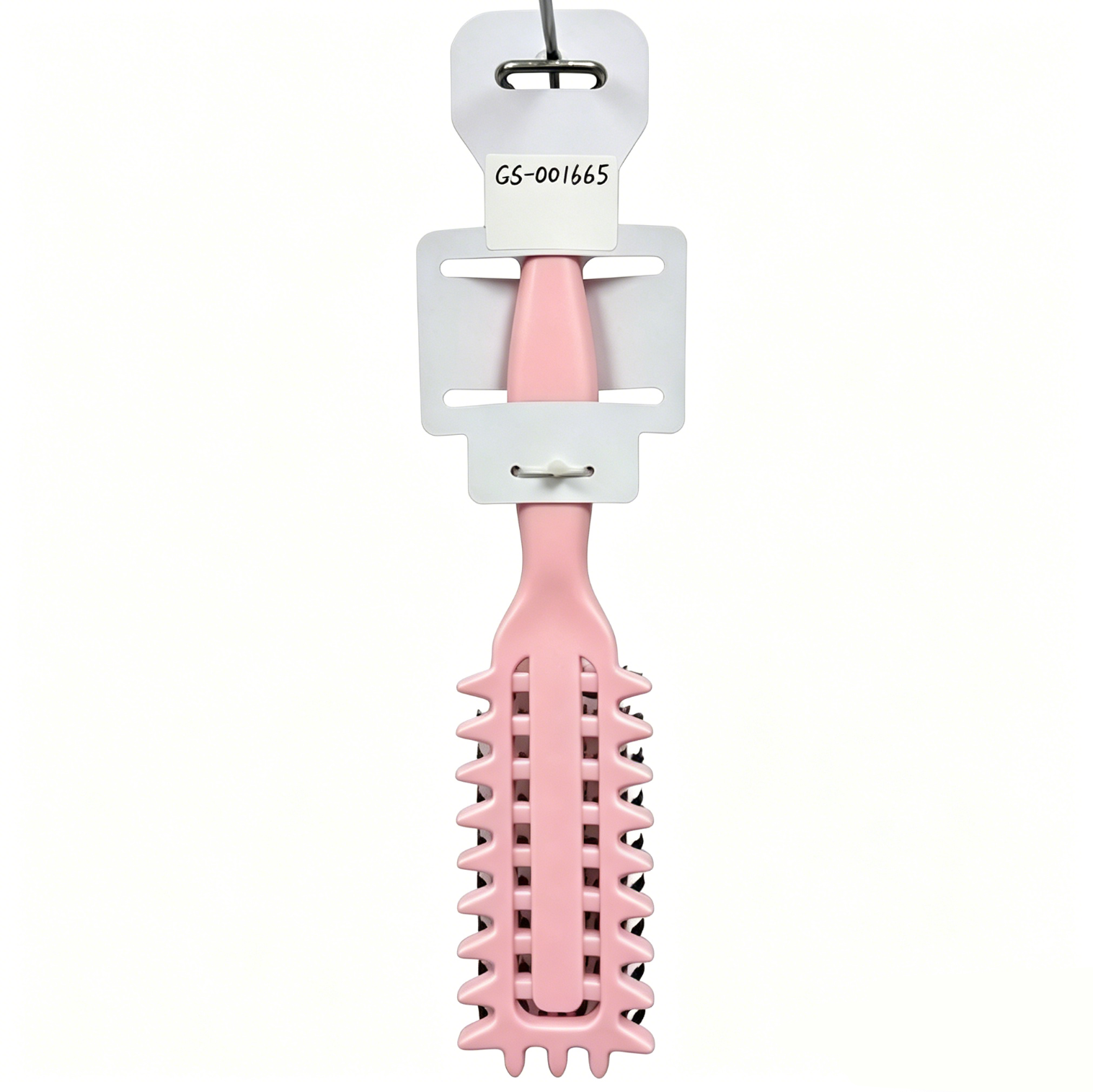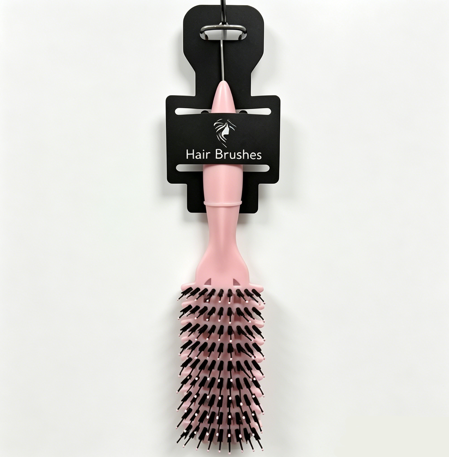 3-function plastic hair brushes with black nylon boar bristle+black nylon pins+pink pin top, edge can be used for curling hair, hand end with pin for dividing hair
