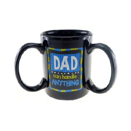 This is a ceramic mug that comes with three handles. This mug has printing on many sides for a fun effect. This unique 3-handle mug is a great addition to your mug collection.