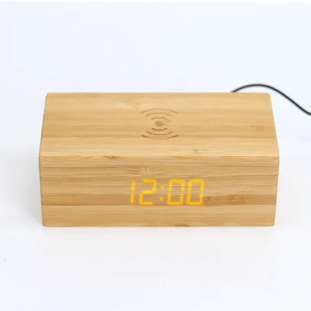 3 IN 1 Bamboo Clock Wireless Charger