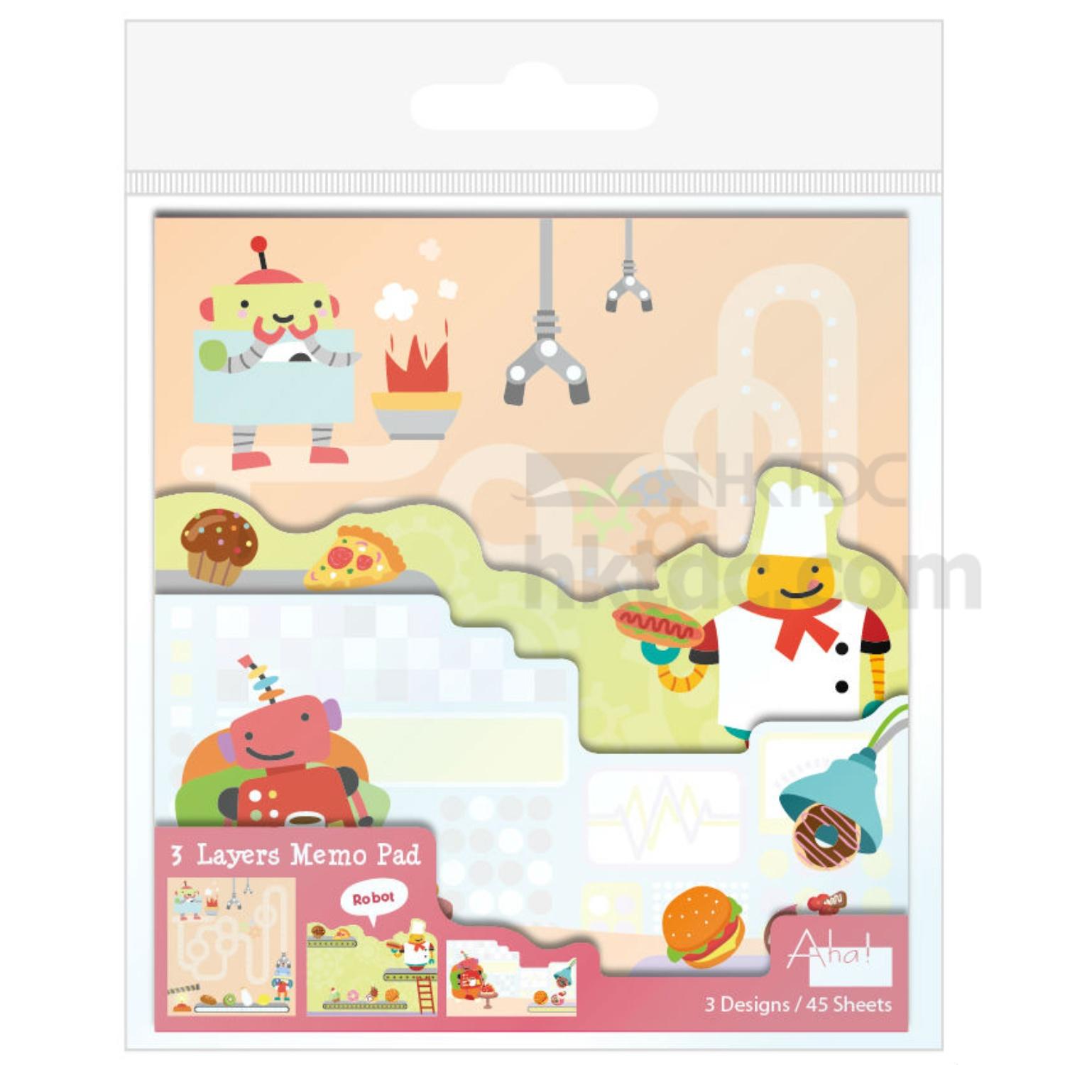 The featured layered memo pad comes with memos sheets of 3 designs and includes 15 sheets in each design. The memos offer ample space for writing on and are decorated with lovely cartoonish robots. They are excellent for children to write with and are suitable for school and home use.