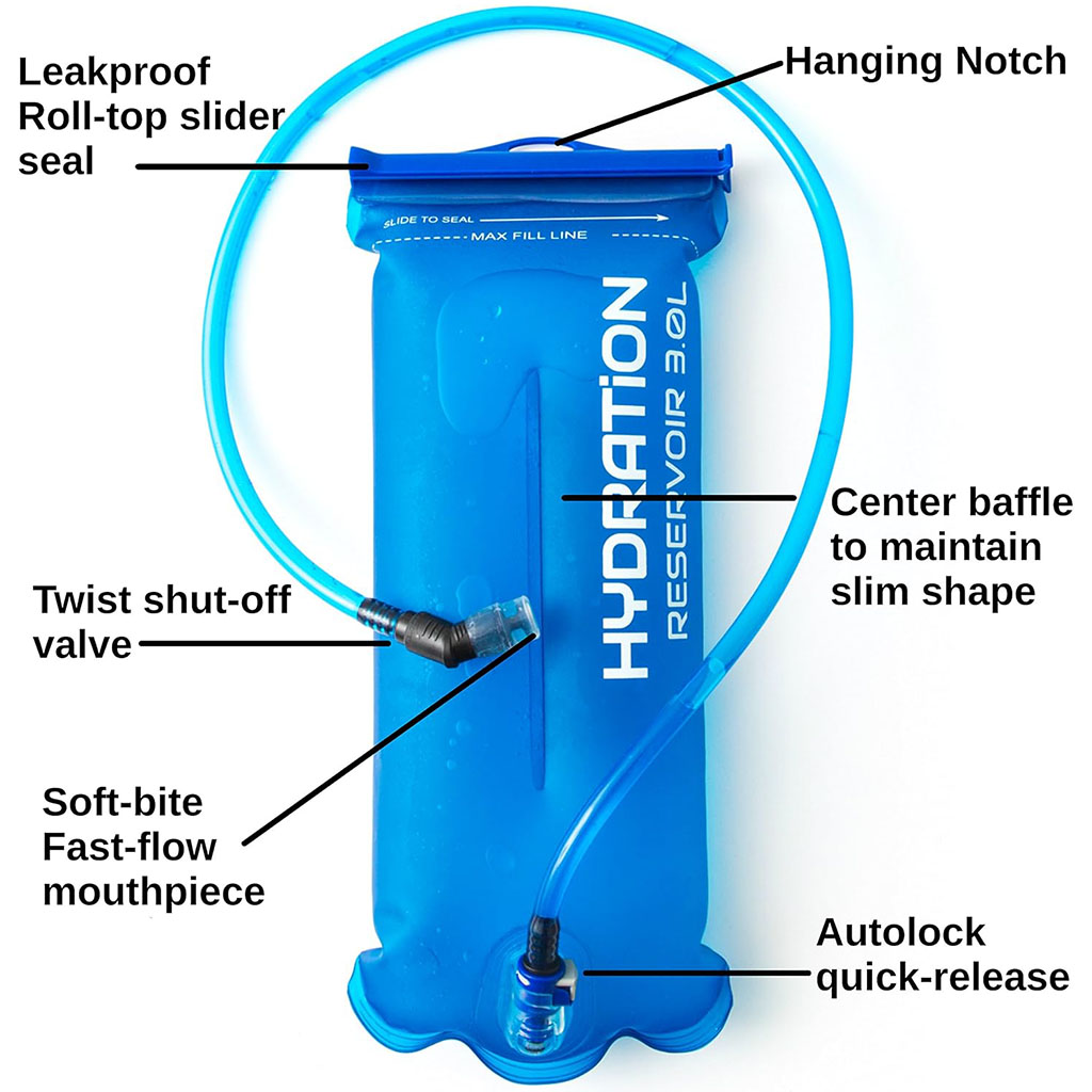 3 Liters TPU Outdoor Hydration Reservoir includes the following features :