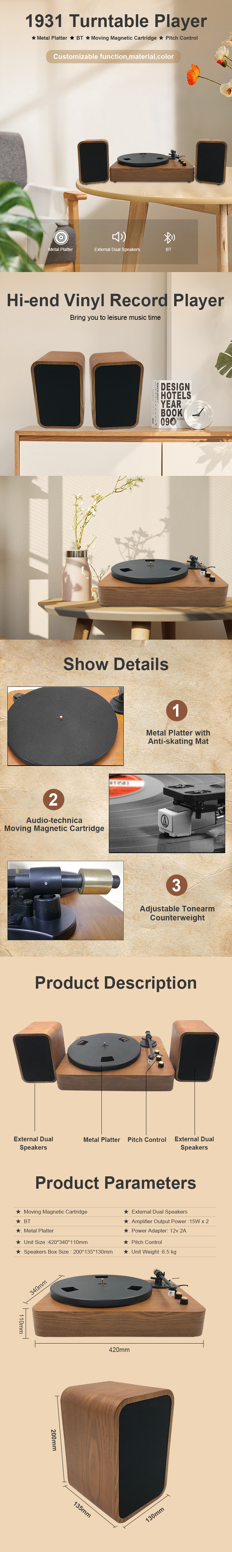3-speed Turntable Player with Dual External Speakers
