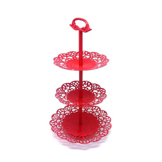 This dessert server is extraordinarily unique with a bright red finish. It is particularly great for serving afternoon tea. Your distinguished guests will surely be pleased by this exquisite piece.