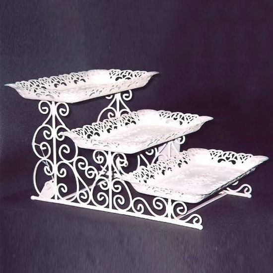 This dessert server boasts an elegant flair with its plain white finish and intricate decorative patterns. It can be folded when not in use to save space. Use this stand to increase the appeal of your delectable treats.