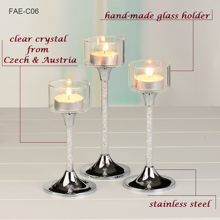 3 Tier Tall Long-Stemmed Glass Tealight Candle Holder