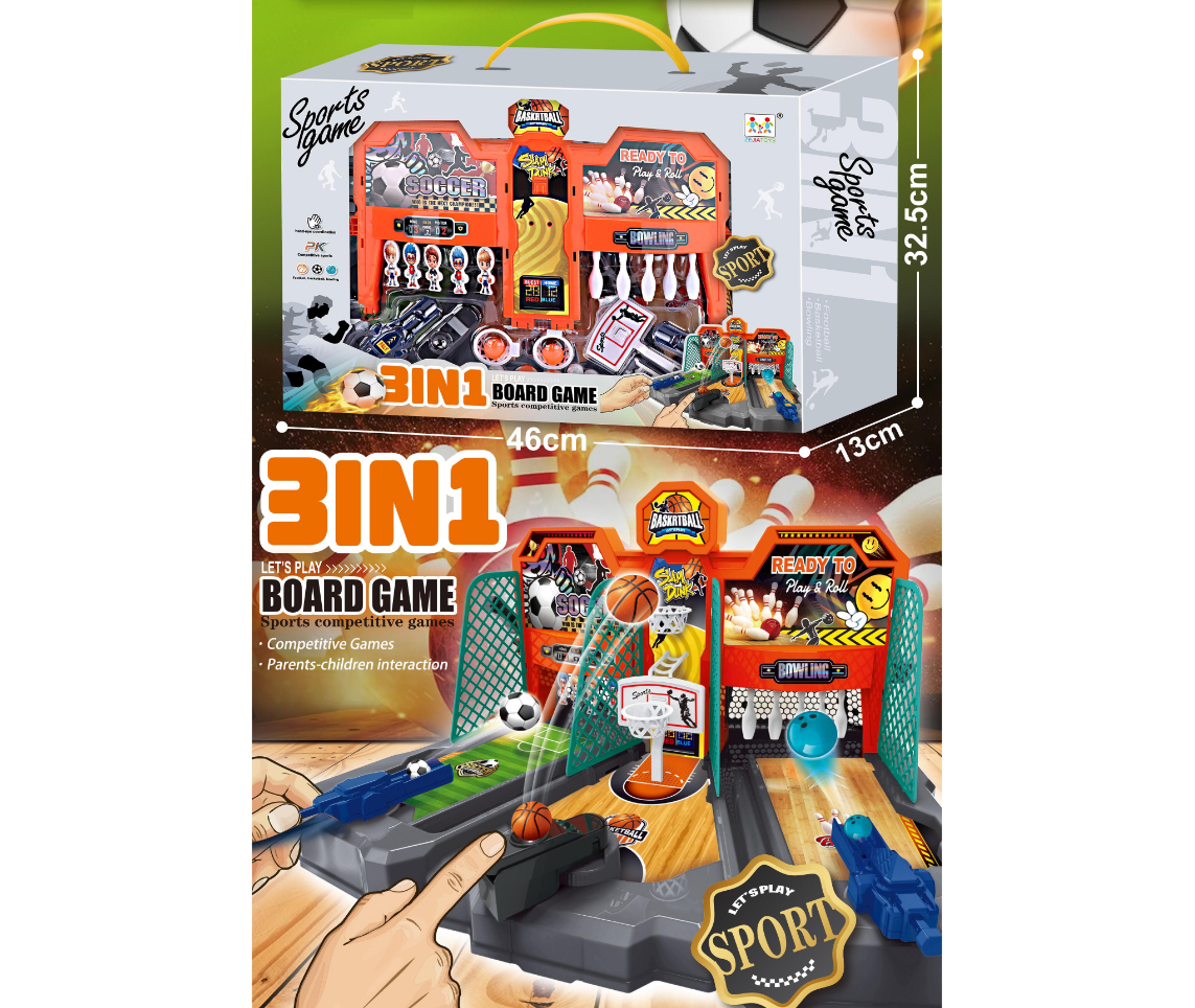 3-in-1 Basketball, Football & Bowling Table Game