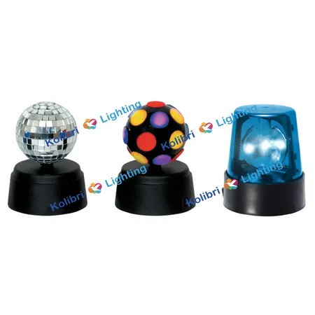 • 3 party lights (Mini Disco Ball, Mini Police Light, Mini Mirror Disco Ball)