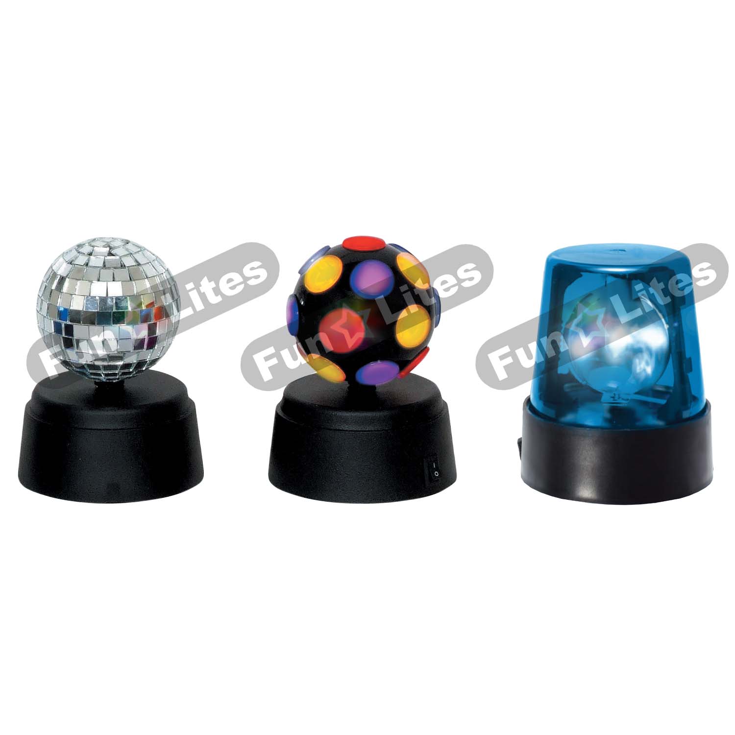 • 3 party lights (mini disco ball, mini police light, mini mirror disco ball)