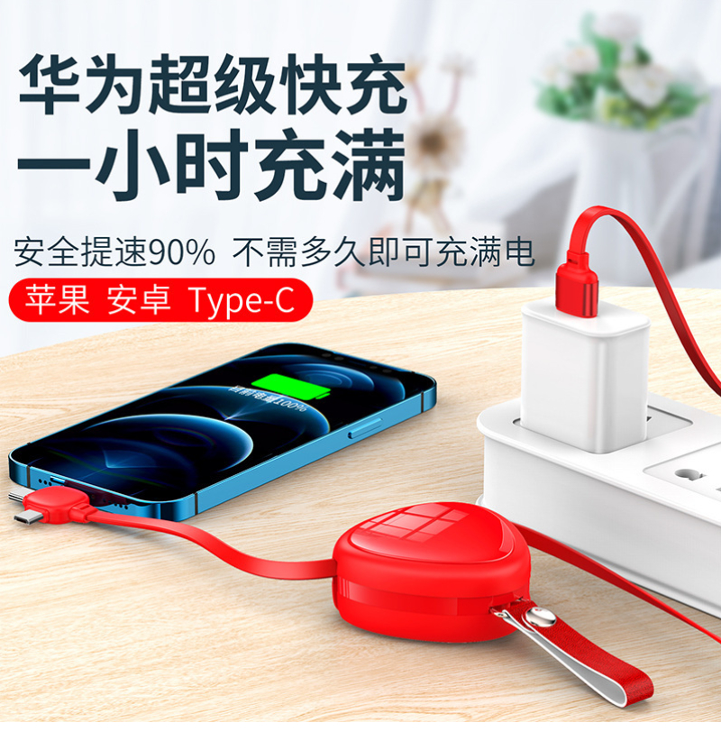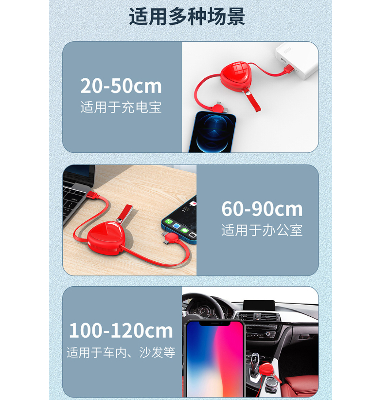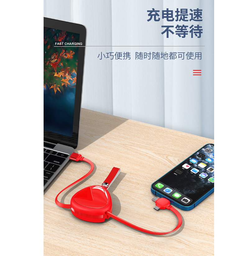 3 in1 fast charging cable The heart-shaped set fast charging data cable can be customized to print logo, promotion small gifts, practical opening gifts, and prizes Valentine's Day gift