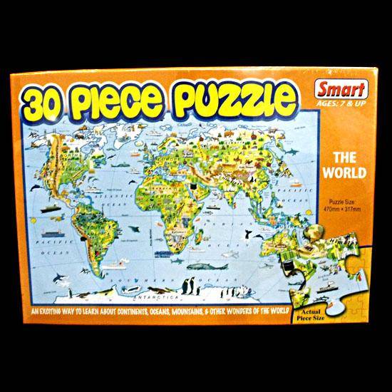 Featured here is a 30-piece puzzle set that is made of paper. This product has a world map theme and is good for learning more about the world. This item is an ideal gift for your children.
