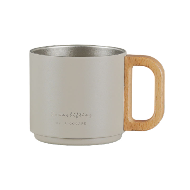 Introducing the 300ml Stackable Stainless Steel Vacuum Mug with Wooden Handle, the ultimate companion for your on-the-go lifestyle. This sleek and stylish vacuum mug is designed to keep your beverages hot or cold for hours, ensuring that you can enjoy your favorite drinks at the perfect temperature, wherever you are.The300ml capacity of this mug is perfect for a generous serving of your favorite beverage. Whether you prefer a steaming cup of coffee to kickstart your day or a refreshing iced tea to quench your thirst, this vacuum mug has got you covered. Its stackable design allows for easy storage, making it ideal for travel, camping, or simply enjoying a hot drink at the office.One of the standout features of this vacuum mug is its wooden handle, which not only adds a touch of elegance but also provides a comfortable grip. The natural wood finish complements the sleek stainless steel body, creating a visually appealing and sophisticated look. The handle is securely attached to the mug, ensuring stability and ease of use. Cleaning is a breeze with this vacuum mug. The wide-mouth opening allows for easy access, making it simple to clean by hand. The stainless steel material is also resistant to stains and odors, ensuring that your beverages taste fresh and delicious every time. In conclusion, the 300ml stainless steel vacuum mug with a wooden handle is the perfect blend of style, functionality, and durability. Its sleek design, exc.