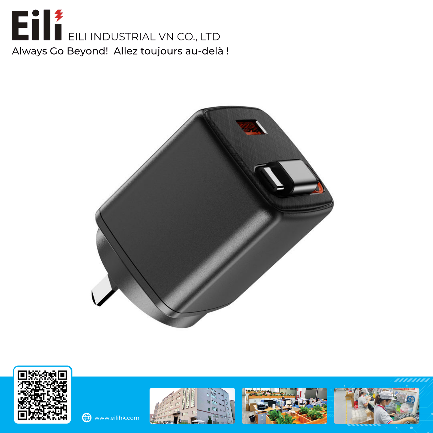 The 30W Retractable Charger features a built-in retractable USB-C cable and an additional USB-A port, keeping your desk, bag, and travel gear clutter-free. Its retractable cable prevents tangling, allows easy storage, and makes on-the-go charging simple and convenient. PPS support ensures fast, safe, and efficient power delivery for smartphones, tablets, and other USB devices.