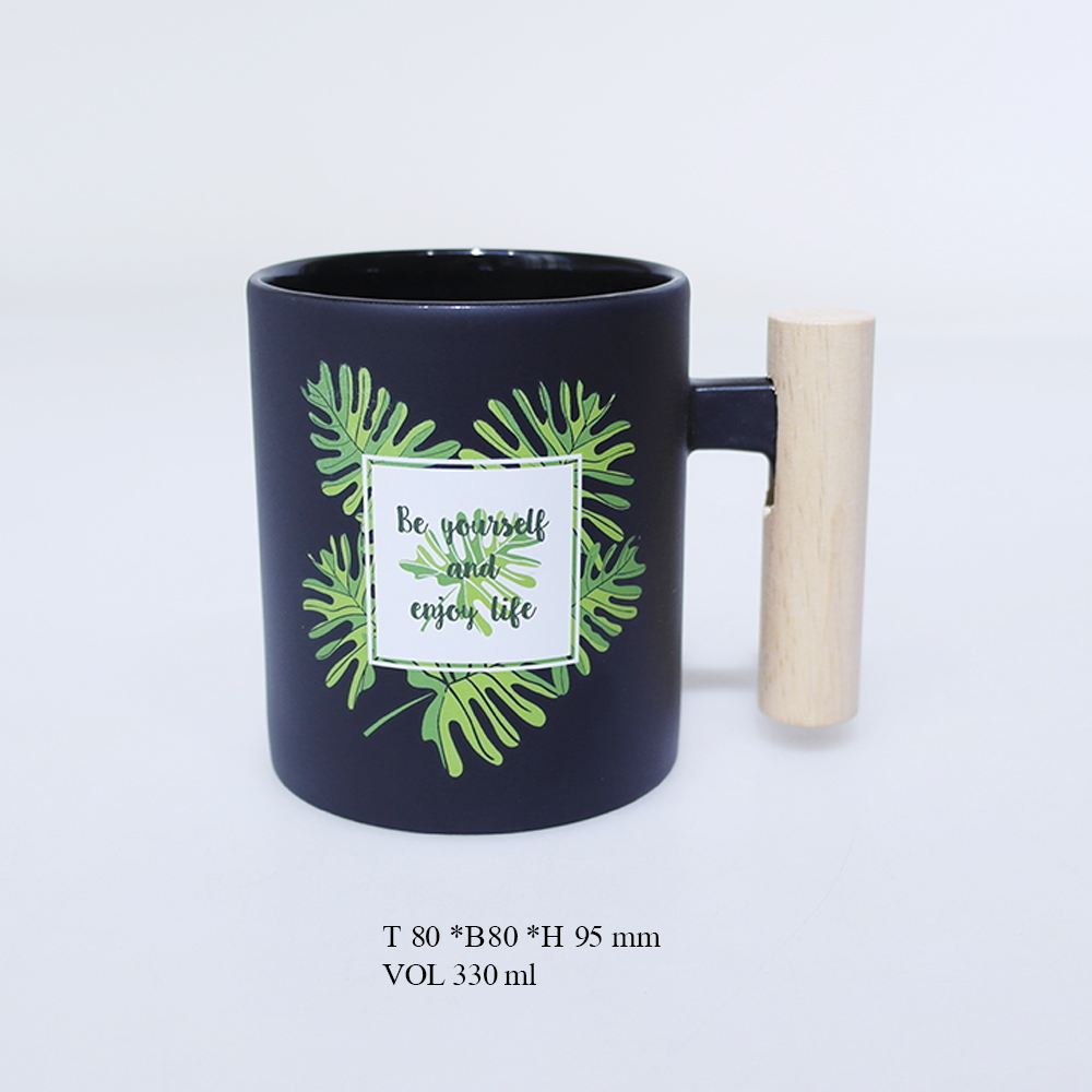 330ml Ceramic Coffee Milk Tea Mug with Wood Handle