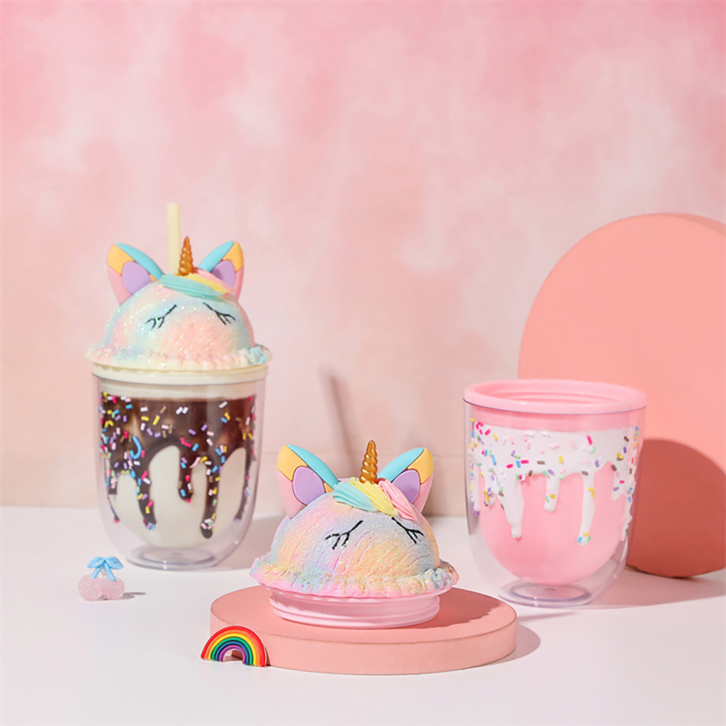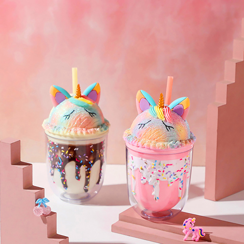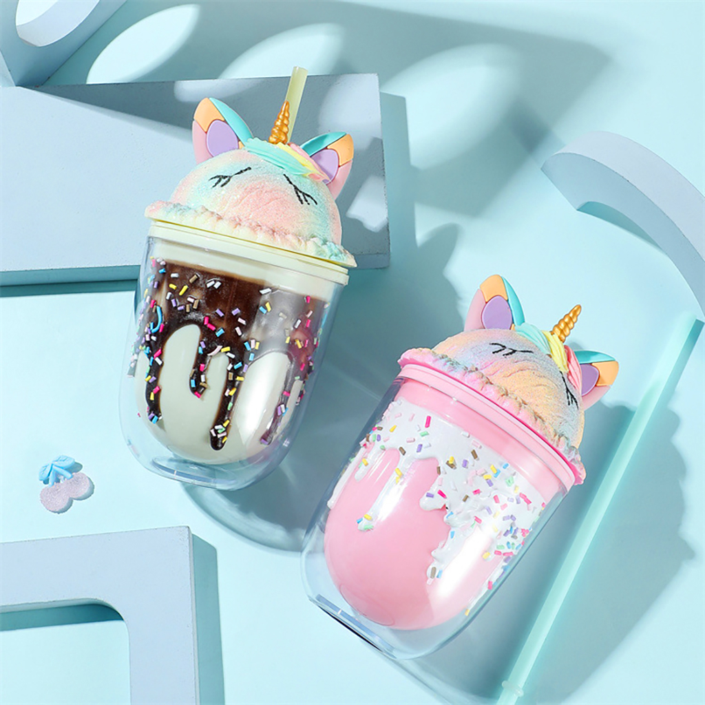 350 ml Double Layer Straw Cup with Unicorn Design includes the following features :