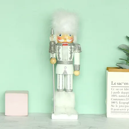 35CM shaggy head White King Nutcracker Wooden decorative crafts home Christmas ornaments