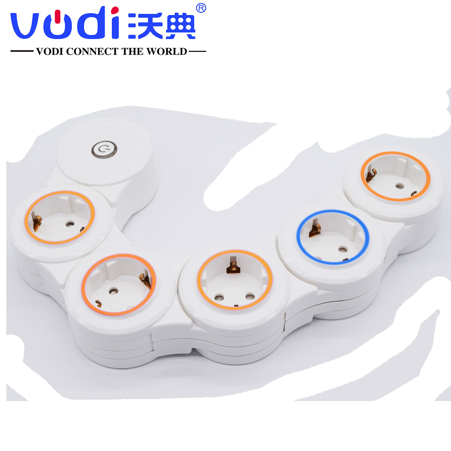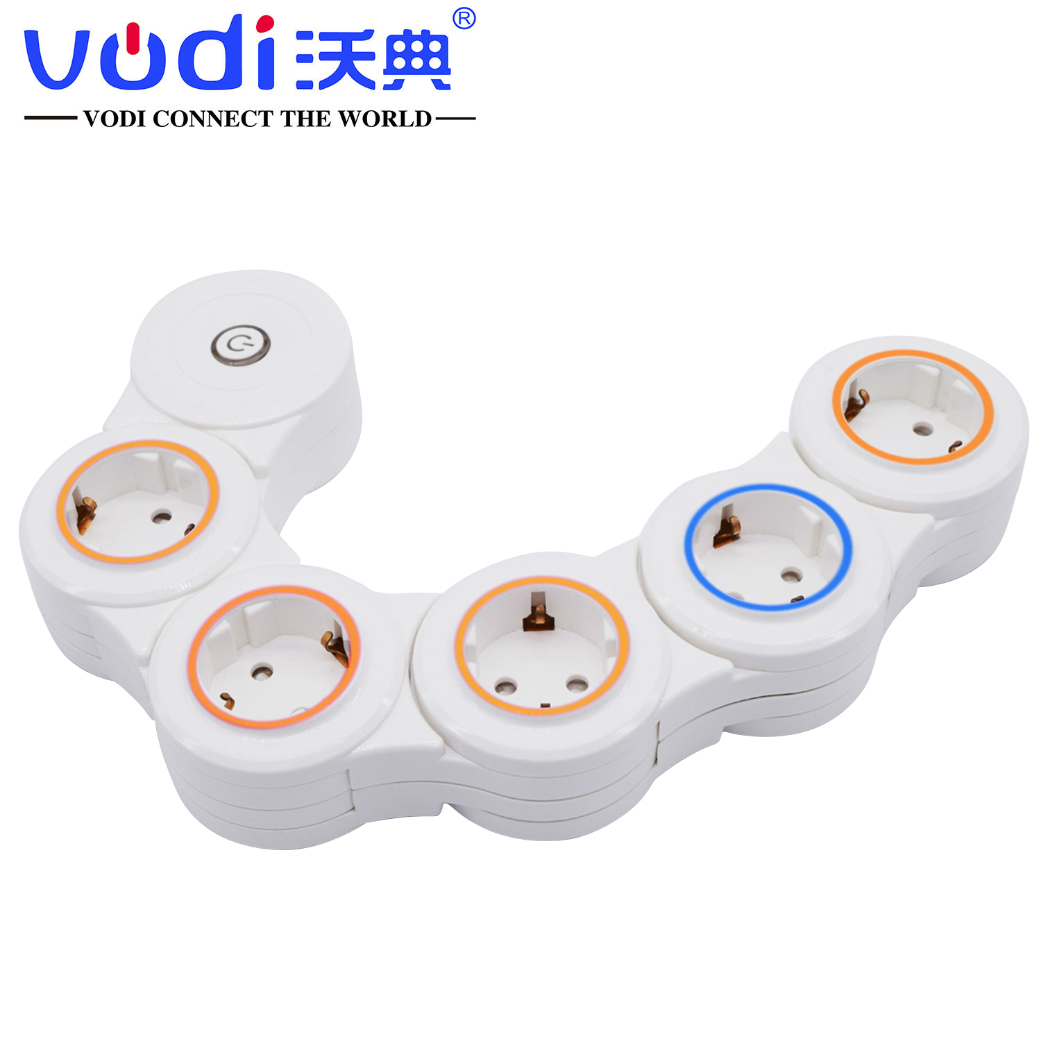 German Plug 5 Way Bending Pivoting Power Strip 360 Degree Flexible Europe power socket