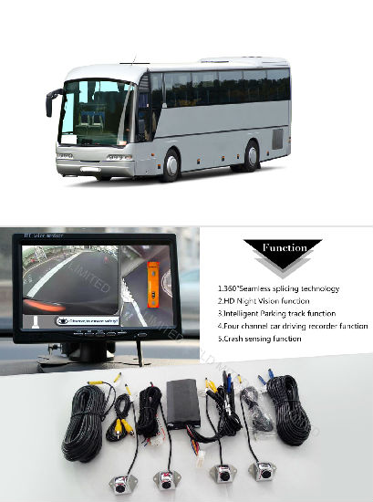 Three-Dimensional Bird-view Parking Assistant System is a system that through 4 pcs. extra wide angle cameras at front, rear, left and right side, collecting images around the car to form a 360 bird-view image by image software tool and splicing technology, then sending the images to the SZM display equipemnt.