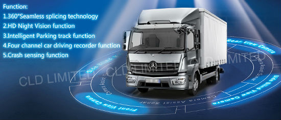 1. 4 pcs 180° wide visual HD cameras around the car at front ,back, left and right , to detect the safe distance and eliminate blind zones, avoid terrible traffic accidents caused by blind zones;