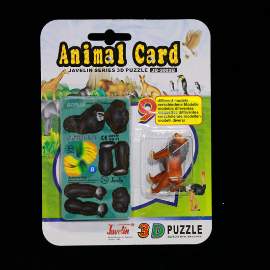 The pictured 3D animal puzzle features vibrant colors and various animal styles. It is made with high-quality plastic and cardboard paper for enhanced durability. The puzzle game can help children recognize different kinds of animals and enhance their hand-eye coordination.