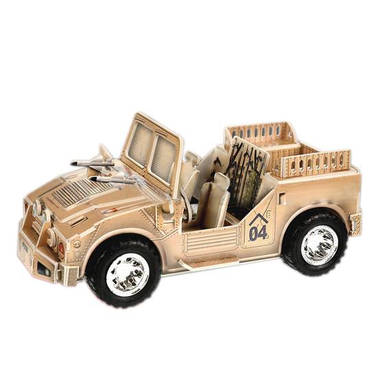This is mode of printed paper with foam for players to formulate the hummer 3D puzzle. It was divided into many small pieces printed in details that needs patience to build, by this, parents can train children's mind, skills and patience. Great satisfaction will be resulted from successful formulating of the hummer.