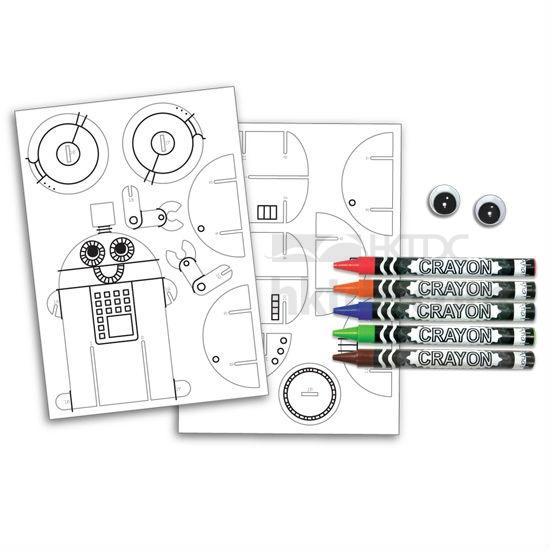 - Package includes 2 pre-cut chipboards, 5 color crayons, 2-3 google eyes and 1 play scene