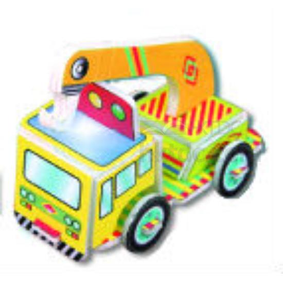The 3D puzzles Construction Car are made of Styrofoam sheets. Besides, both surfaces are glued with glassy colourful papers. Furthermore, it is suitable for indoor use only.