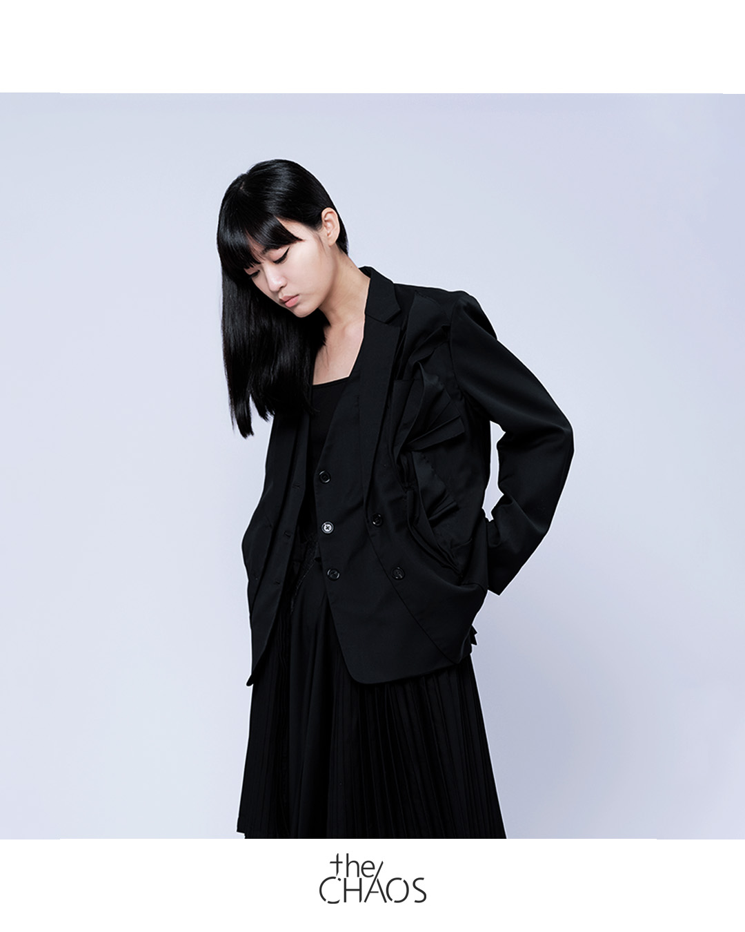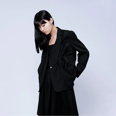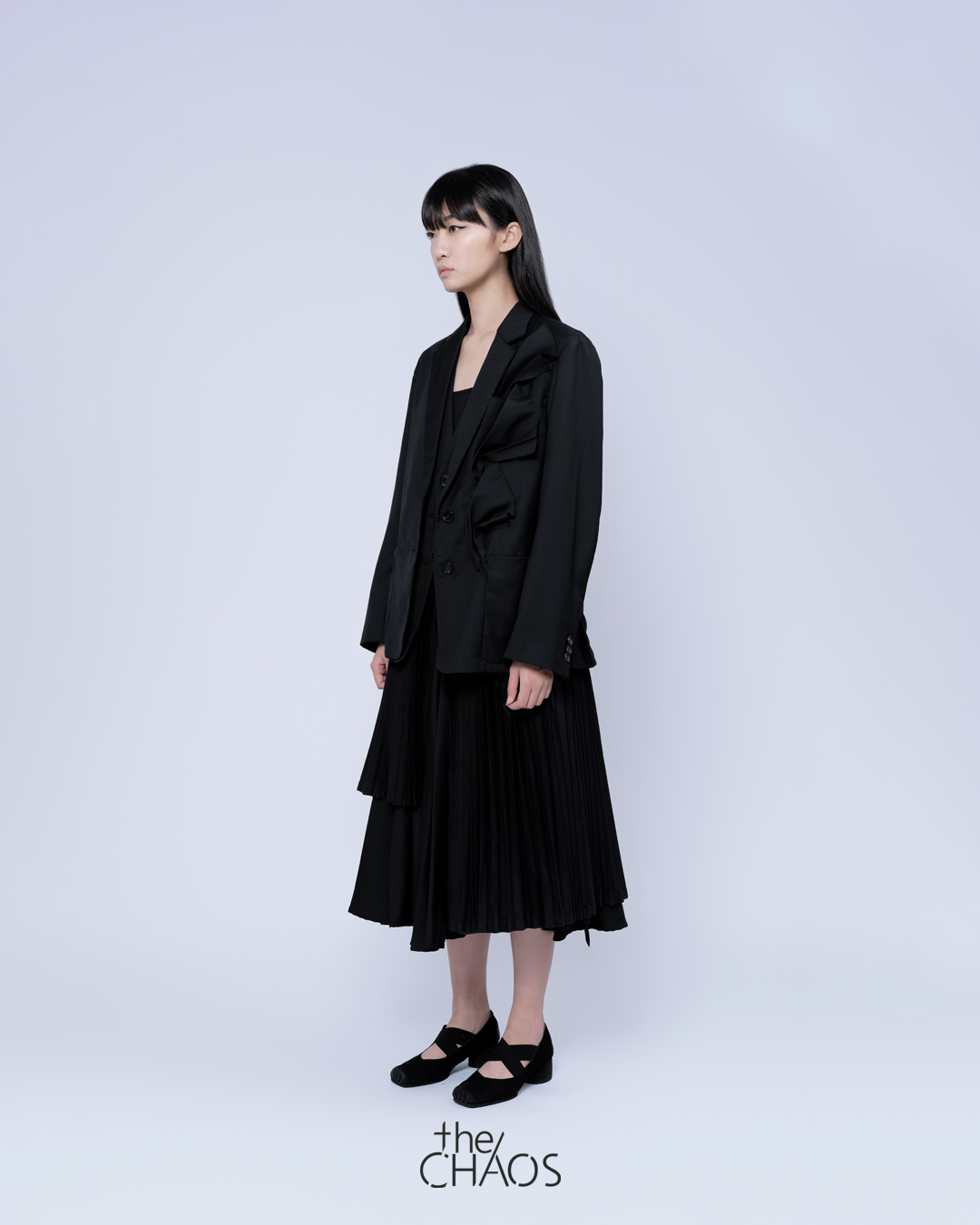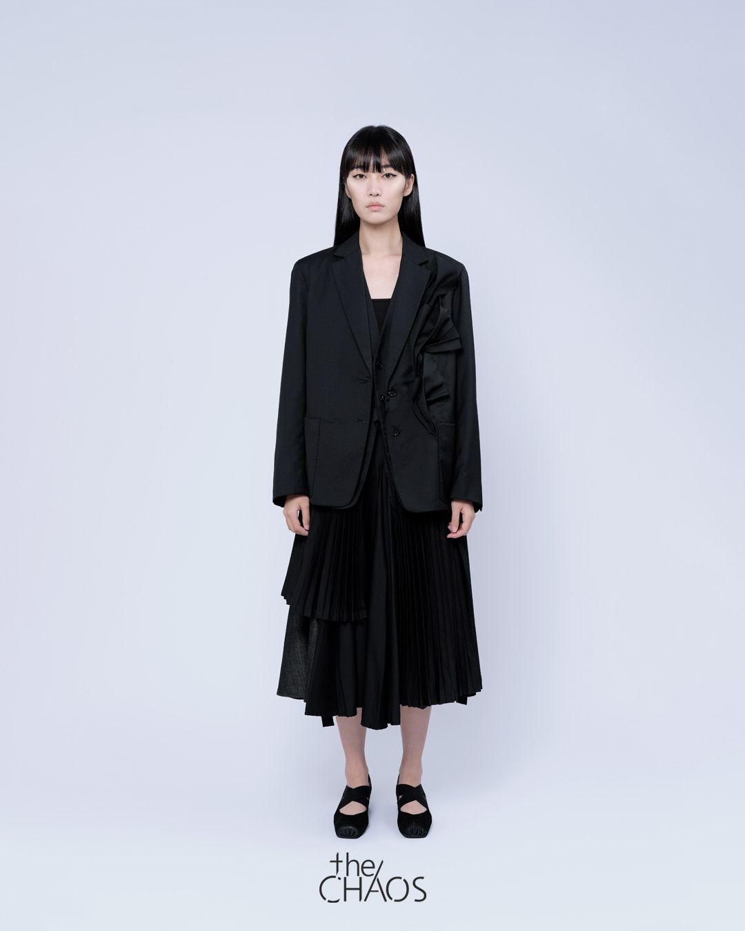 'Time pause' inspired 3D flow sculpture suit jacket in dead stock tailoring fabric.