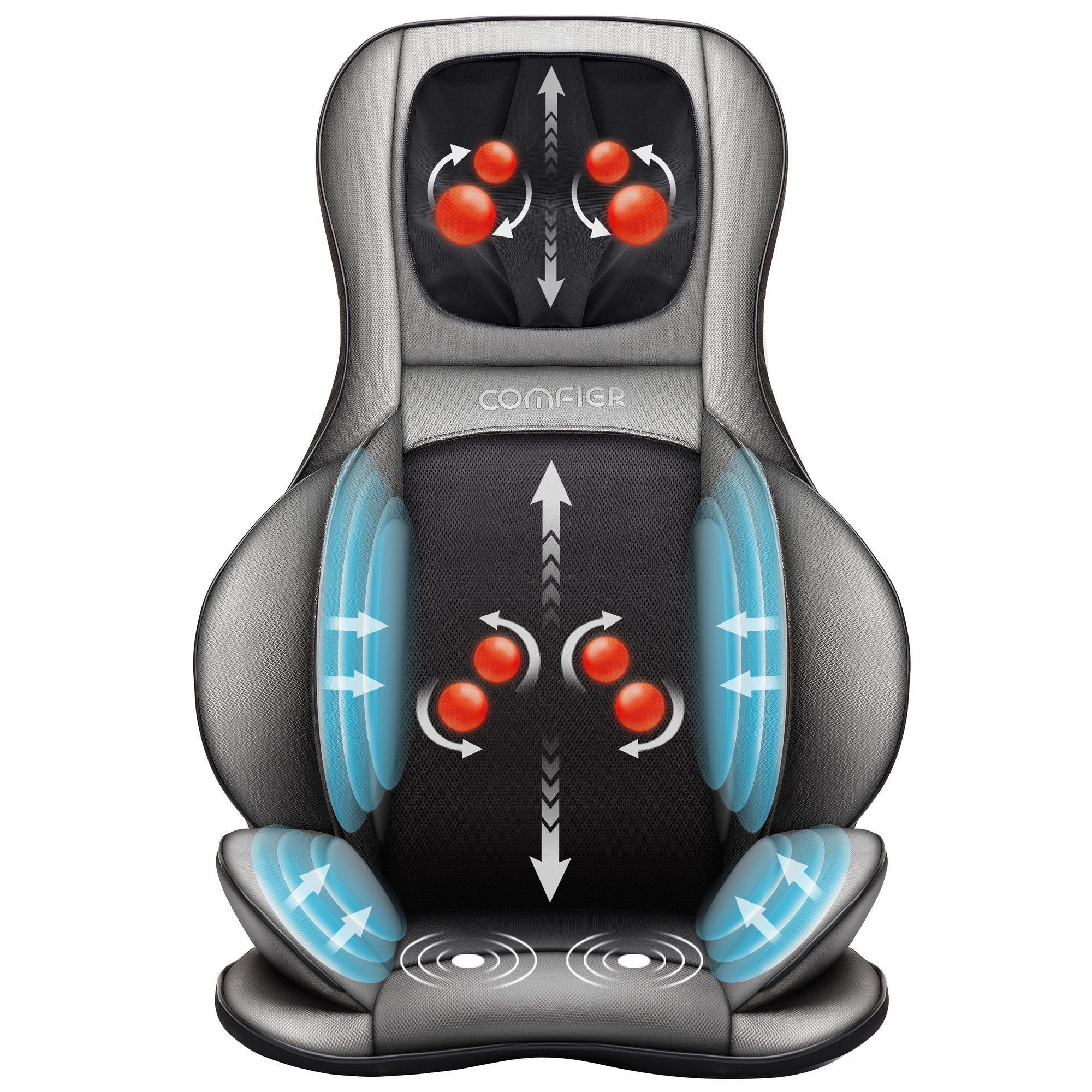 This multi-purpose shiatsu massage chair combines shiatsu, finger pressure, kneading, rolling, spot, air compression and infrared heating functions to help eliminate fatigue and soreness after working hard or driving for a long time. With the 2D and 3D shiatsu massage modes, it can travel up and down on the full back, upper back and lower back. The adjustable width of rollers for rolling massage and electric control shiatsu neck massage with rotating directions provides comfortable massage conveniently. Equipped with spot shiatsu massage, it provides impressive customizability. There is an air massage function and vibration on the seat and back with L-M-H intensities. It is portable and suitable to use on any chair.