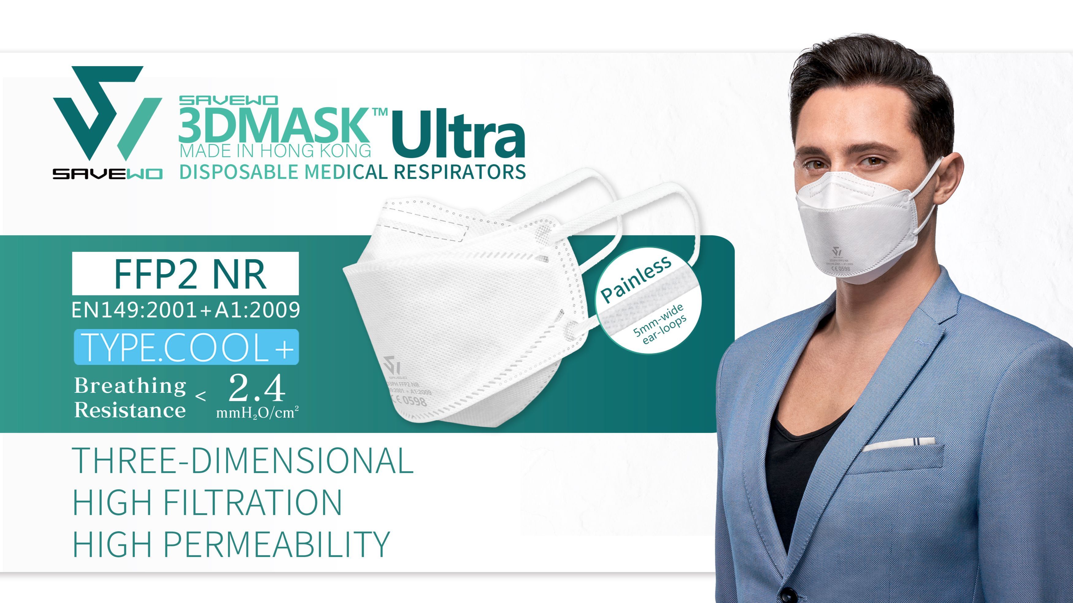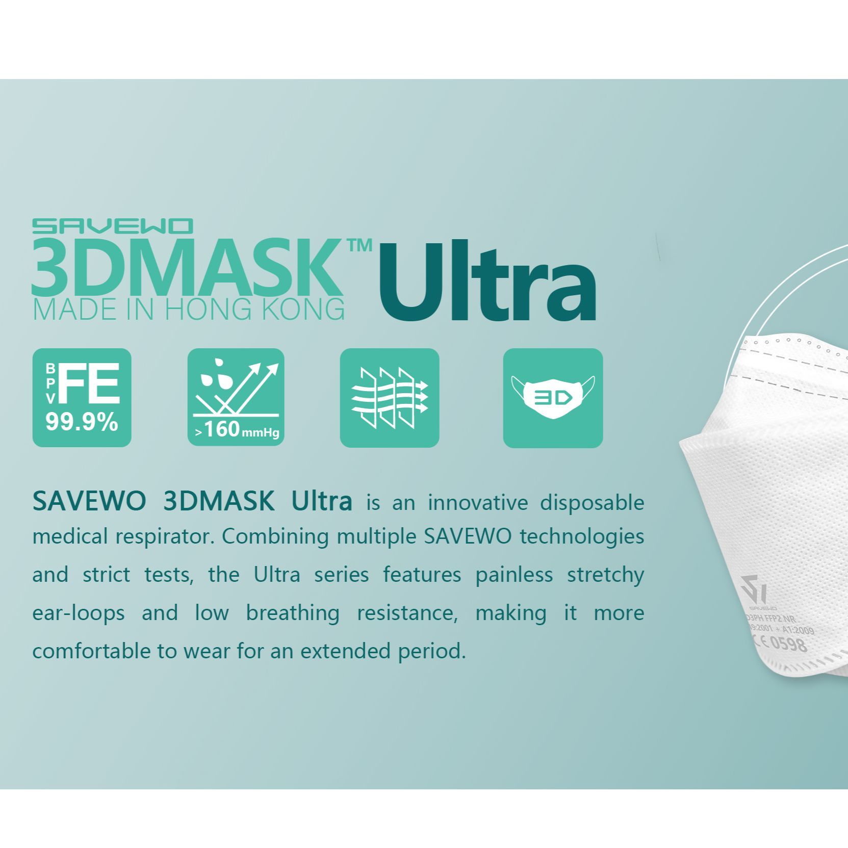 SAVEWO 3DMASK Ultra is an innovative disposable medical respirator. Combining multiple SAVEWO technologies and strict tests, the Ultra series features painless stretchy era-loops and low breathing resistance, making it more comfortable to wear for an extended period.