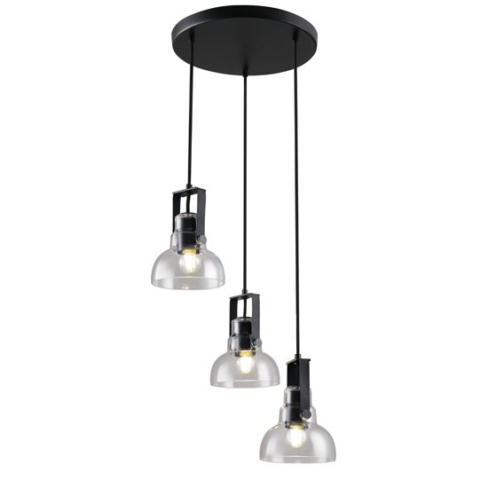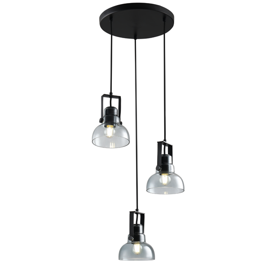 3Lt Pendant Lamp, Material:Metal+Glass ,Bulb:3x E27 Max.40W, Product Size:Ø380×H1500mm, Shade size:Ø142×130mm, Colour:Black + smoke glass , or Gold + Black metal parts / Cognac glass, or Black + Clear glass, Packing:white box+colour label
