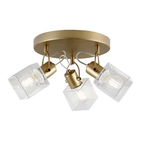 3Lt Spot Light Round, Material:Metal+Glass, Bulb:3x E14 Max.40W, Product Size:L230*W230*H140mm, Colour:sandy gold + matt white, Packing:white box+colour label